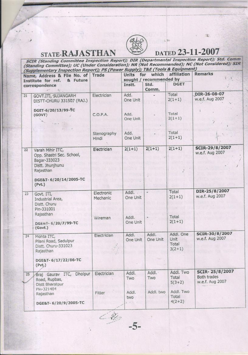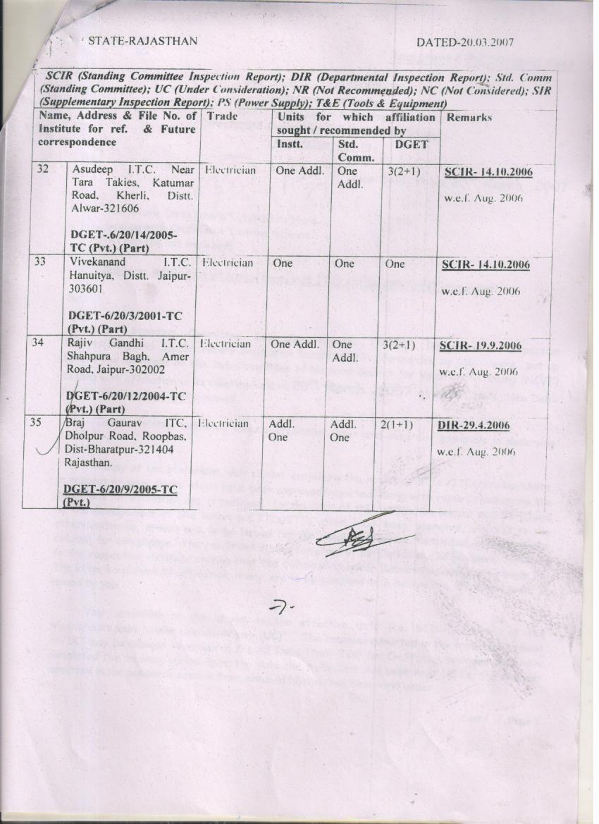 DGET and State Government Orders Issued from time to time:-
