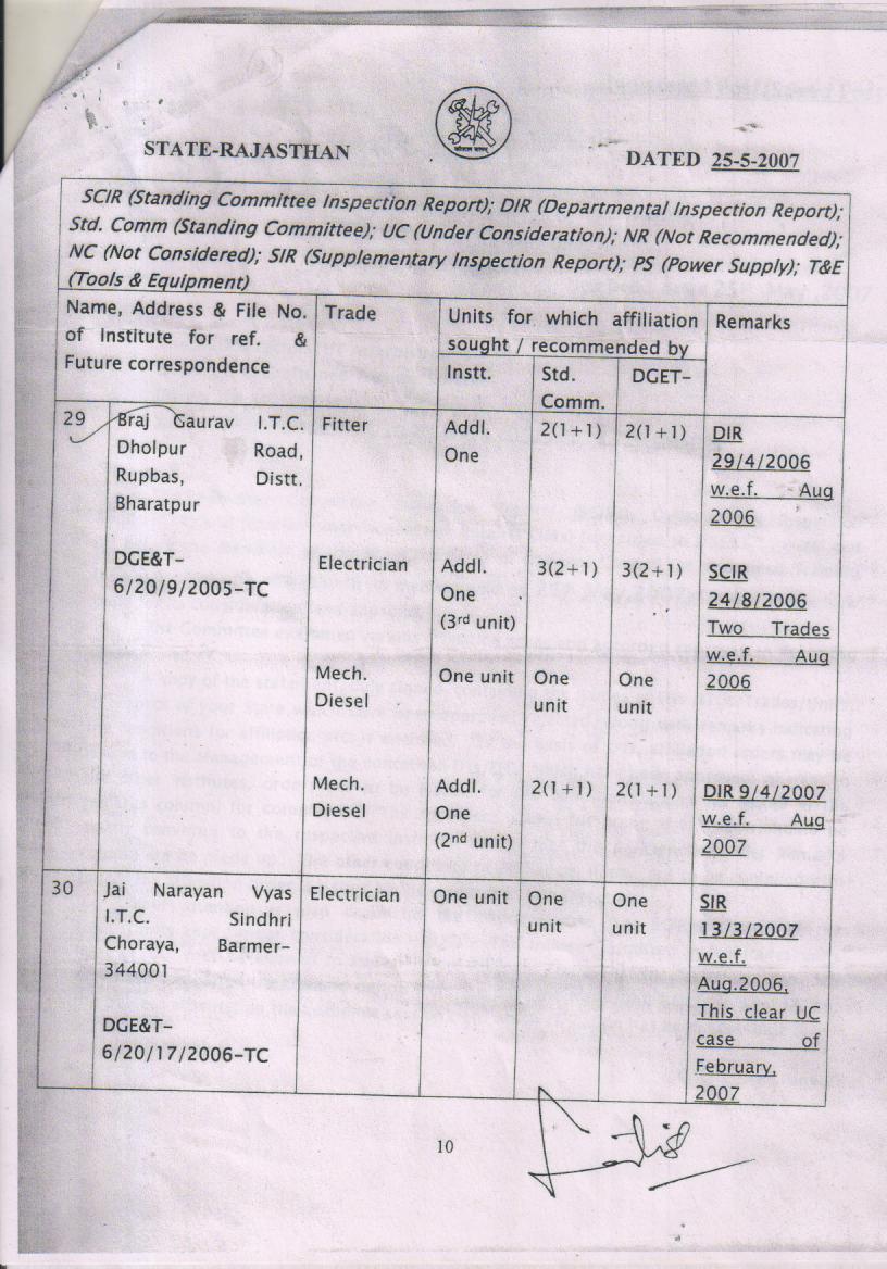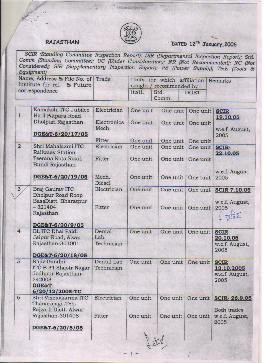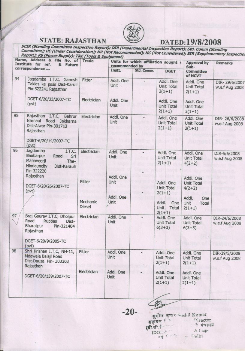 DGET and State Government Orders Issued from time to time:-